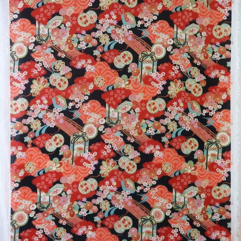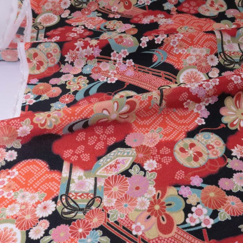 やさしい色の上品な古典柄 一越ちりめん生地 貝桶と花鼓(クリームアイボリー)【布がたりオリジナル】 10cm単位 切り売り