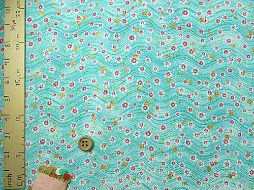 きれいな色の縮緬☆ ちりめん生地・波にゆれる小桜(水色) 10cm単位 切り売り