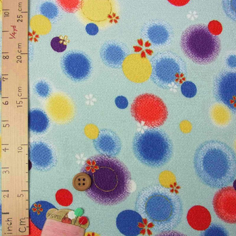 モダンなぼかし水玉柄ちりめん。縮緬手芸や和小物づくりに! 生産終了/在庫限り ちりめん生地・花ほたる(水色) 10cm単位 切り売り