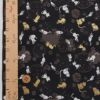 ●黒地にゴールドと白の猫がくっきりと浮き上がり、可愛い柄です。小花のくすんだ紫色と雪輪の渋い色目がしっとりとした印象も。