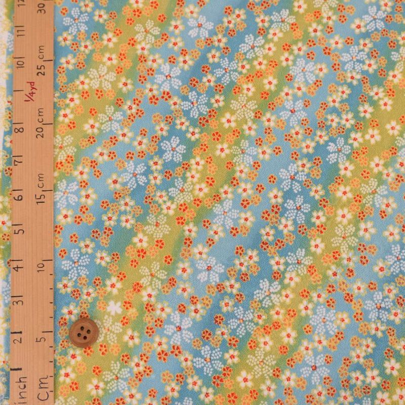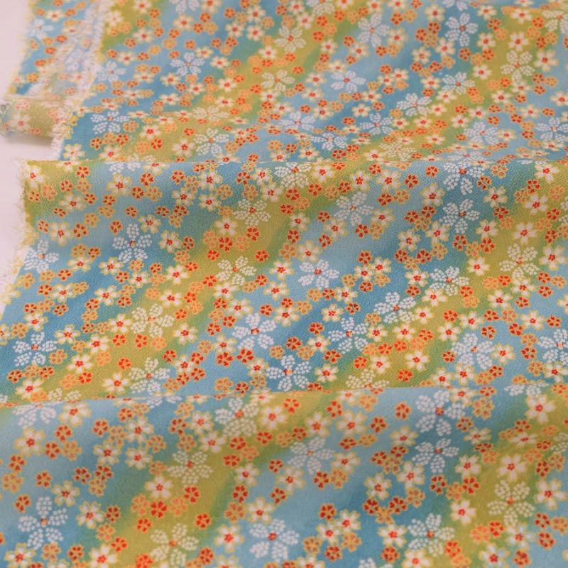 和小物にもおすすめ 一越ちりめん生地 はすぼかしに舞桜(赤) 10cm単位 切り売り