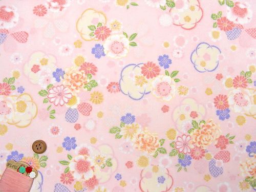 一越ちりめん・和花舞(白/ピンク) 10cm単位 切り売り