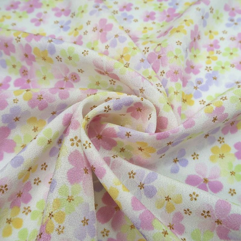 つまみ細工や手芸に 一越ちりめん生地 ふうわり花(白/藤色) 10cm単位 切り売り