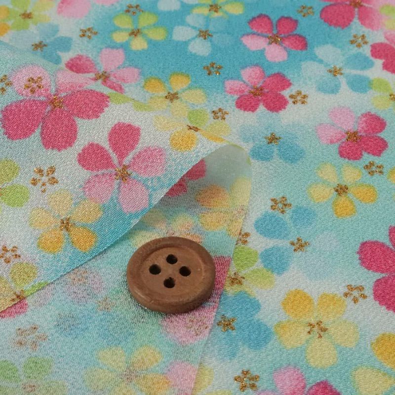 明るい色の縮緬生地 一越ちりめん生地 ふうわり花(ブルー/ピンク) 10cm単位 切り売り