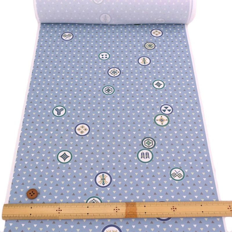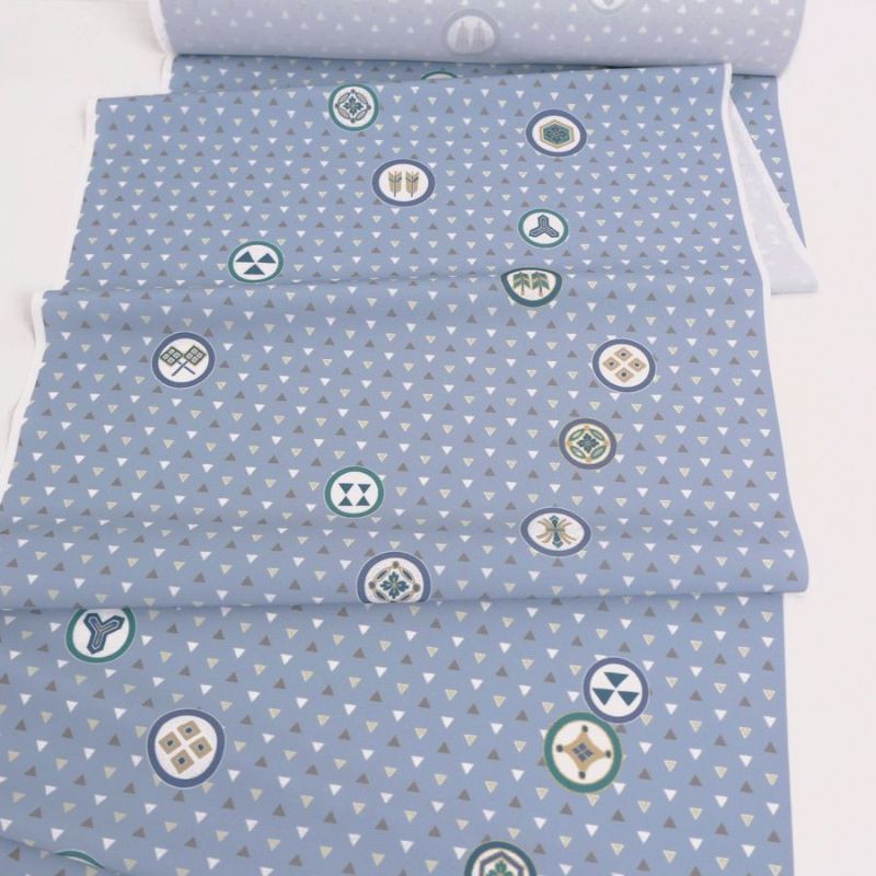 七五三の男の子に最適 着物用洗える生地 うろこ散らしに家紋柄(青ねず) 10cm単位 切り売り