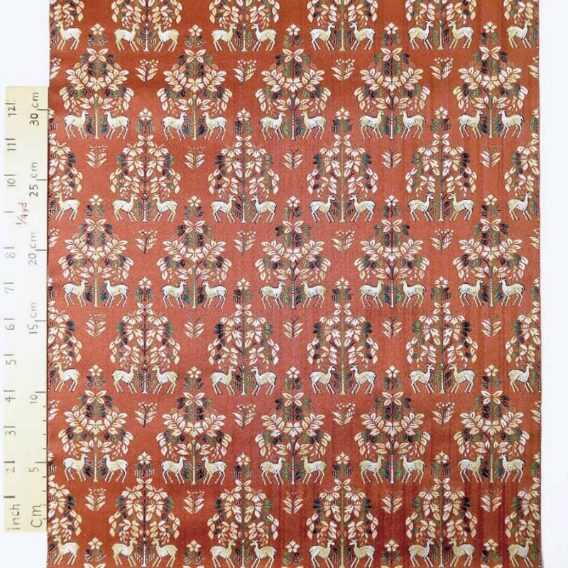 生産終了/在庫限り 西陣織裂地・鹿草木夾纈(ベージュ) 10cm単位 切り売り
