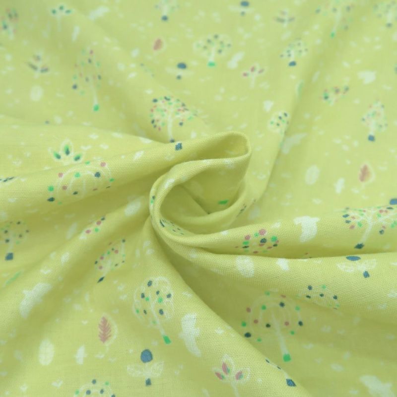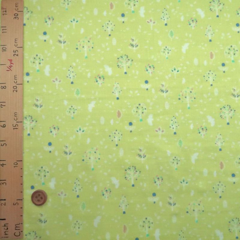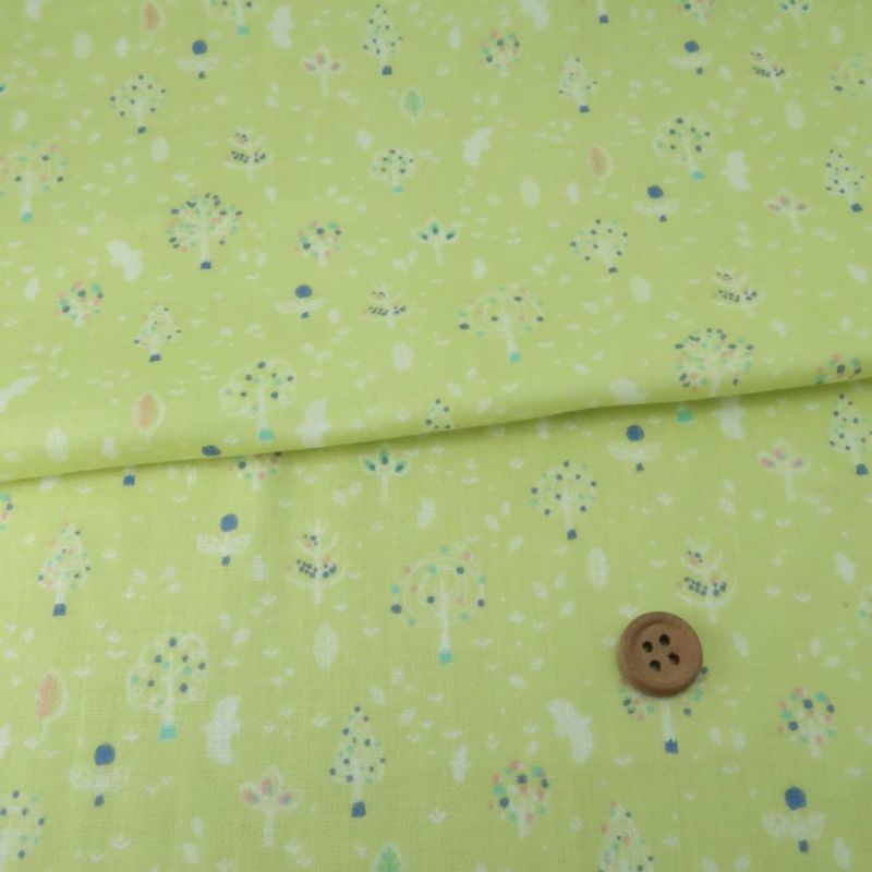 マスクやチュニックに♪ 生産終了/在庫限り ダブルガーゼ生地 鳥と木立(きなり) 10cm単位 切り売り