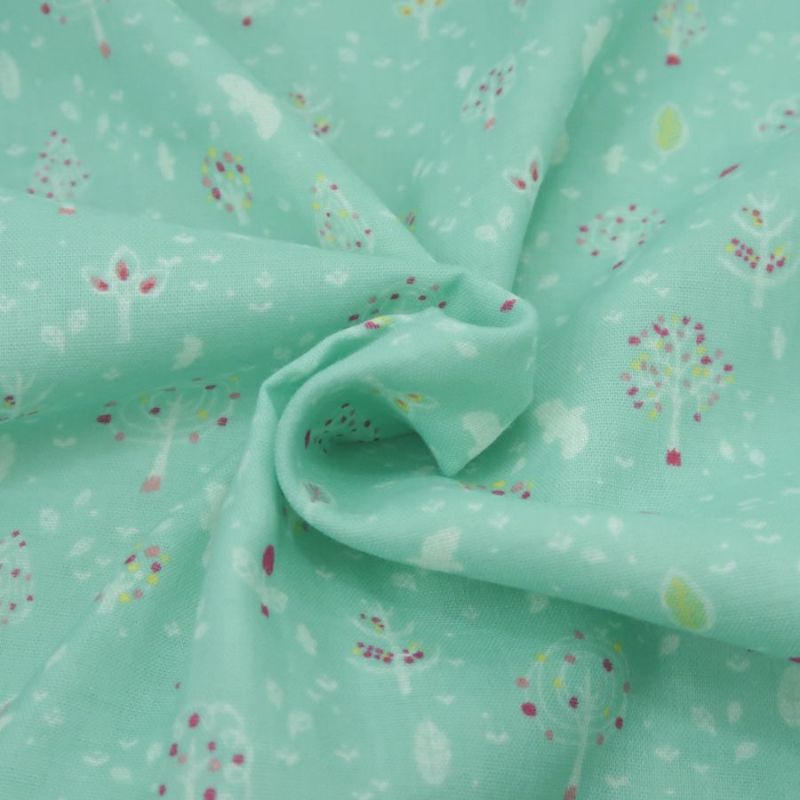 マスクや衣類に♪ 生産終了/在庫限り ダブルガーゼ生地 鳥と木立(ピンク) 10cm単位 切り売り