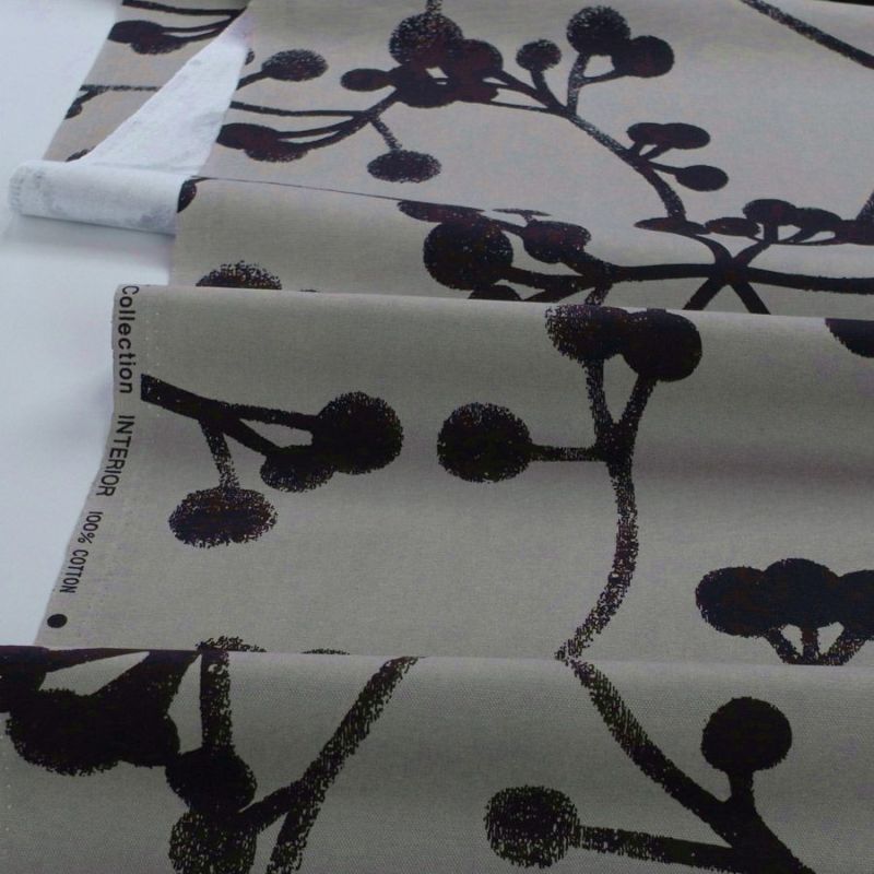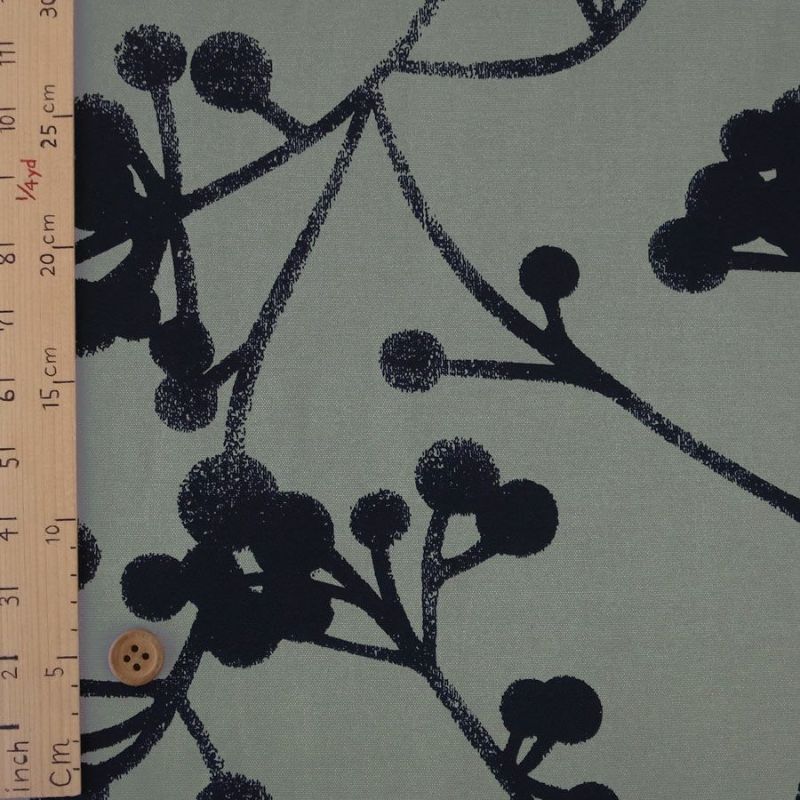ナチュラルな植物柄 生産終了/在庫限り コットン生地 北欧風シンプル植物柄 150cm幅(グレイネイビー) 10cm単位 切り売り