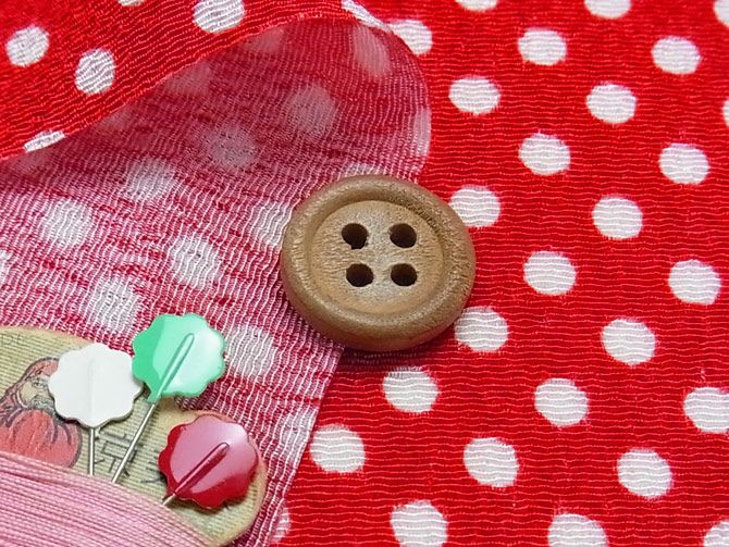 ●赤に白抜きの水玉模様は定番で使いやすい組み合わせ。紅白でおめでたい作品にも使えますし、お細工もののアクセントにもおすすめです。