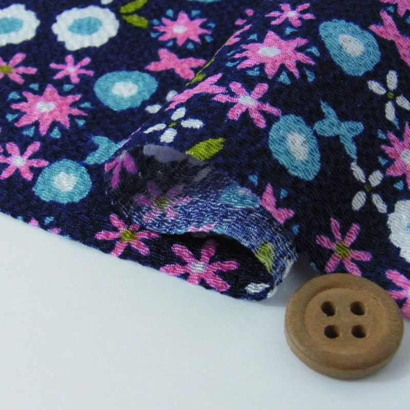 モダンなぼかし水玉柄ちりめん。縮緬手芸や和小物づくりに! 生産終了/在庫限り ちりめん生地・花ほたる(水色) 10cm単位 切り売り