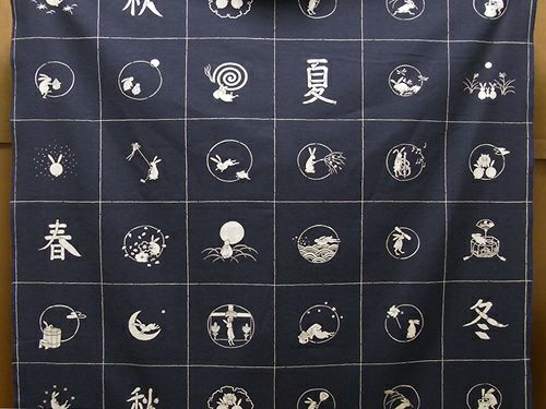 手染め和風コットン生地・四季のうさぎ(紺) 段単位 切り売り