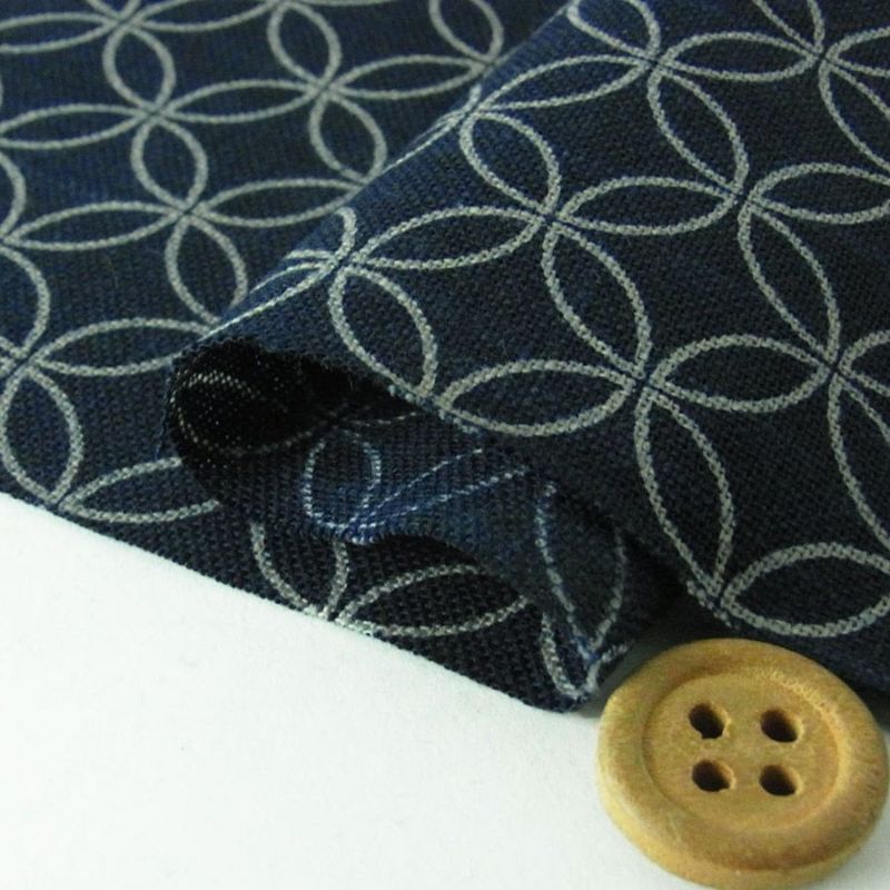 素朴な藍染風木綿生地・シンプルでシックな梅柄が素敵 和柄コットン生地・藍染調 ねじ梅 10cm単位 切り売り