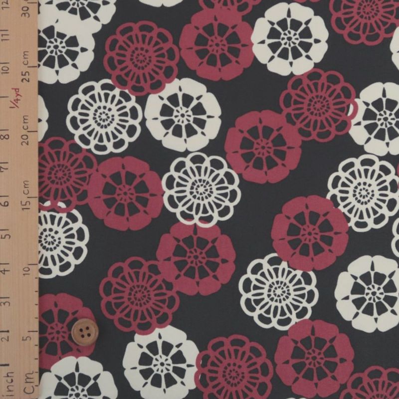 和柄コットン生地 花ぐるま 150cm幅(うめこん) 10cm単位 切り売り