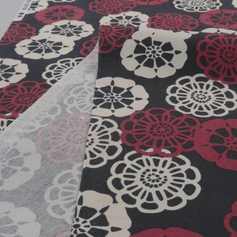 カーテン・インテリア・エプロン・バッグに 生産終了・在庫限り/和柄コットン生地 花ぐるま 150cm幅(うめこん) 10cm単位 切り売り