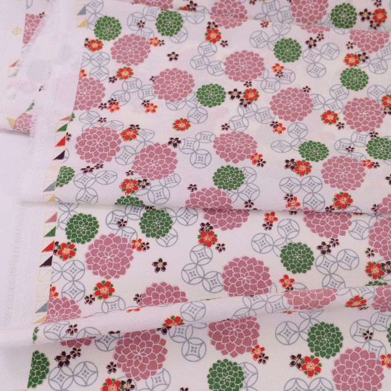 衣装にもおすすめ!洗濯OKのちりめん ポリちりめん生地 七宝に春秋花(水色) 10cm単位 切り売り