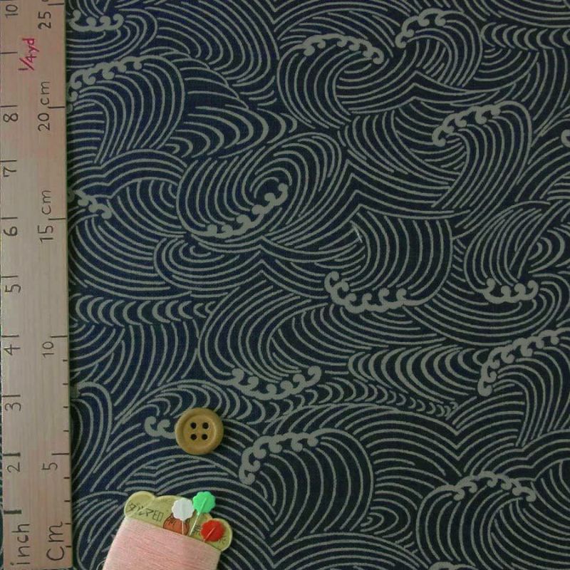 素朴な藍染風木綿生地・シンプルでシックな梅柄が素敵 和柄コットン生地・藍染調 ねじ梅 10cm単位 切り売り