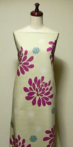 とても大きな菊のお花が、明るく元気な印象。ワンピースなどに仕立てると映えそうですね。菊の花は大きいほうが約22cm、小さいほうが約5.5cmです。