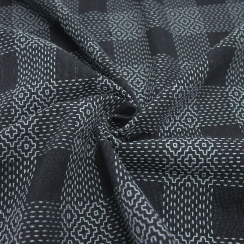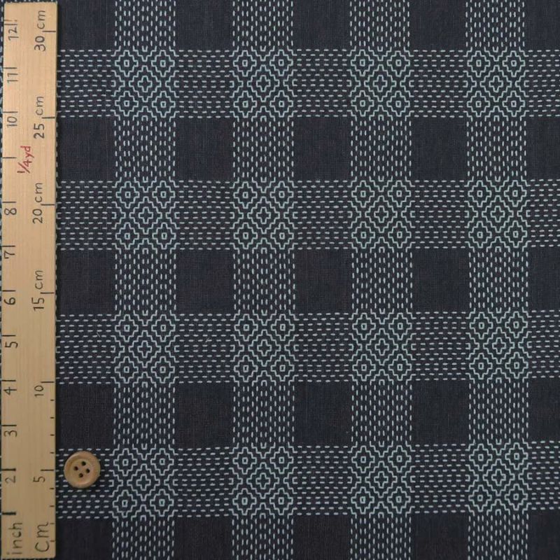sakizomemomenシリーズ 在庫限り/ 先染木綿生地・北欧風ステッチ模様 (素色/紺) 10cm単位 切り売り