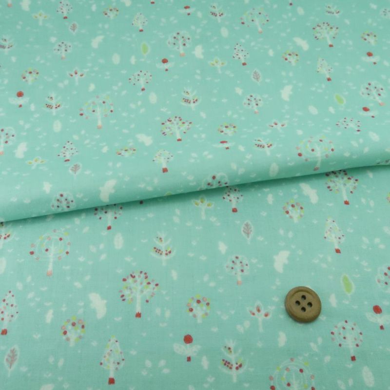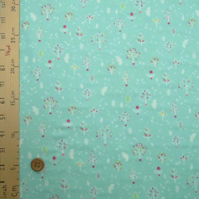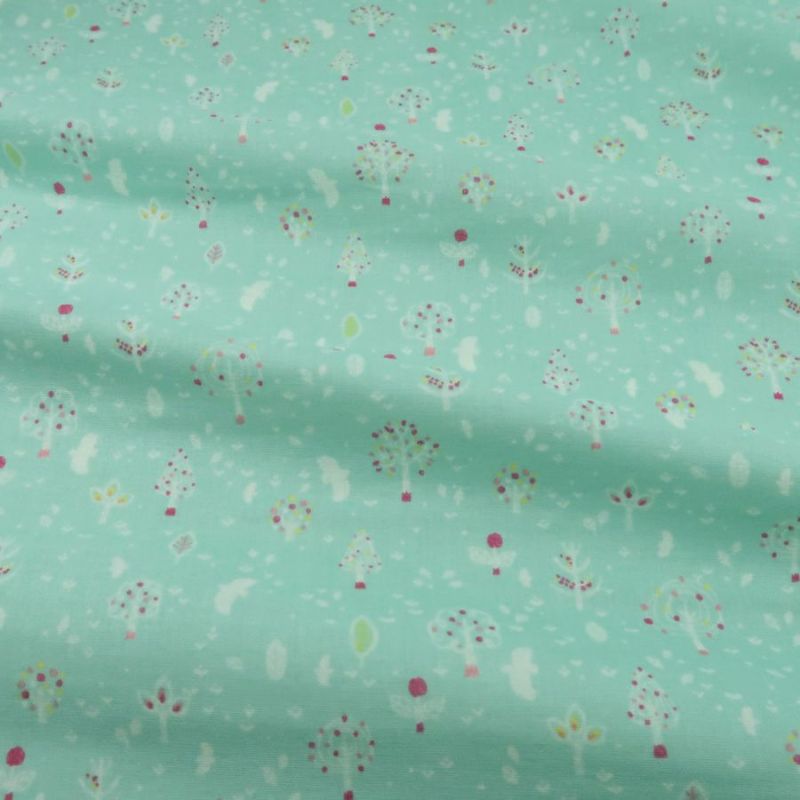 マスクや衣類に♪ 生産終了/在庫限り ダブルガーゼ生地 鳥と木立(ピンク) 10cm単位 切り売り