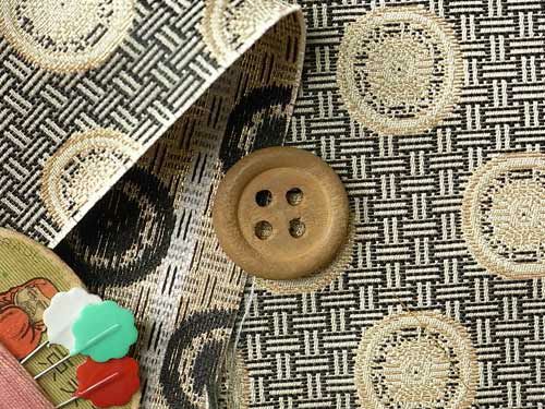 生地の上のボタンは直径約2cmです。生地のたて方向=写真のたてです。