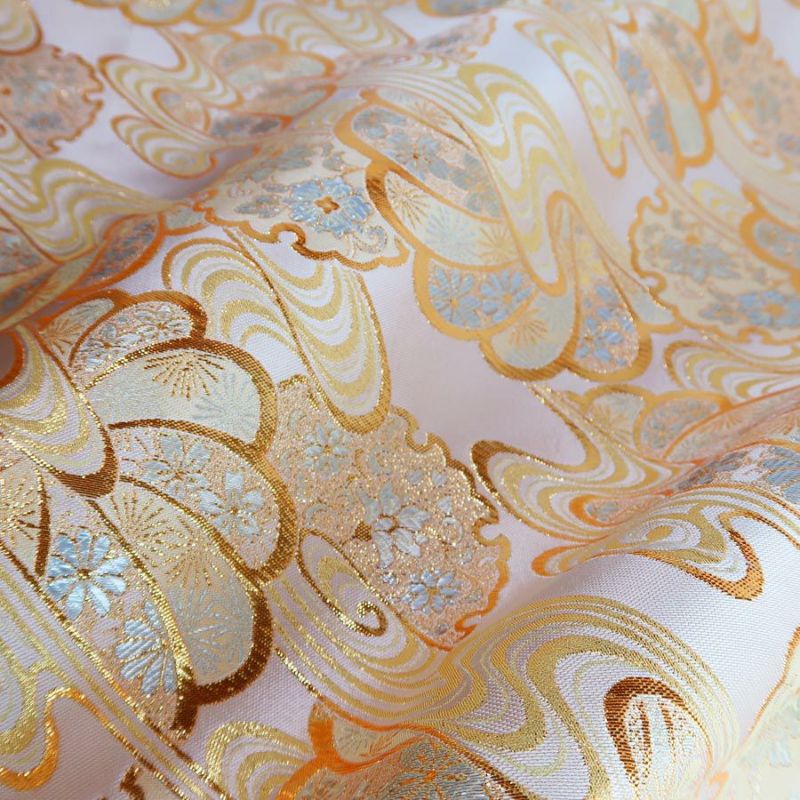 金襴生地(金らん)流水に雪輪とねじり花(アイボリー)