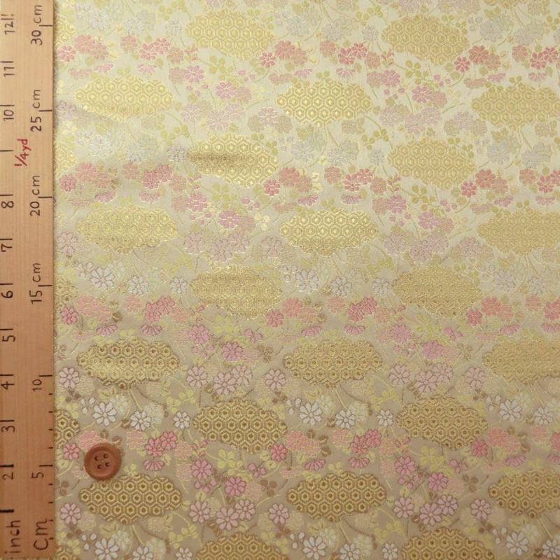 可愛い色の西陣織・バッグや和雑貨に 金襴生地(金らん)きらめき梅(クリームベージュ) 10cm単位 切り売り