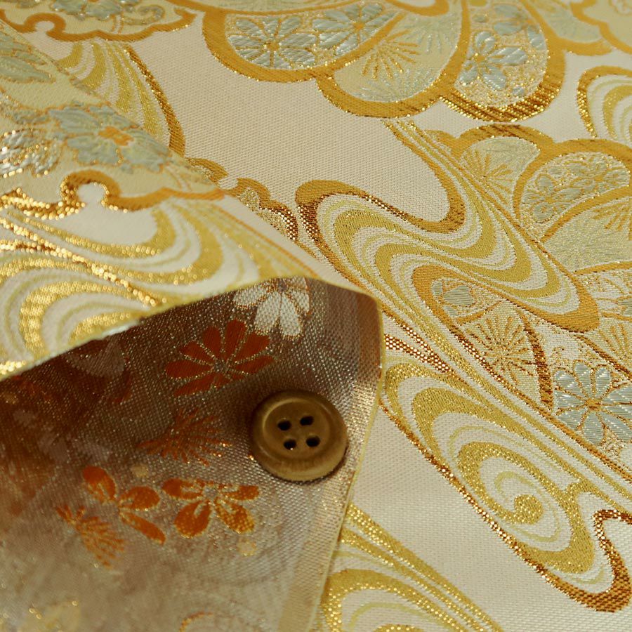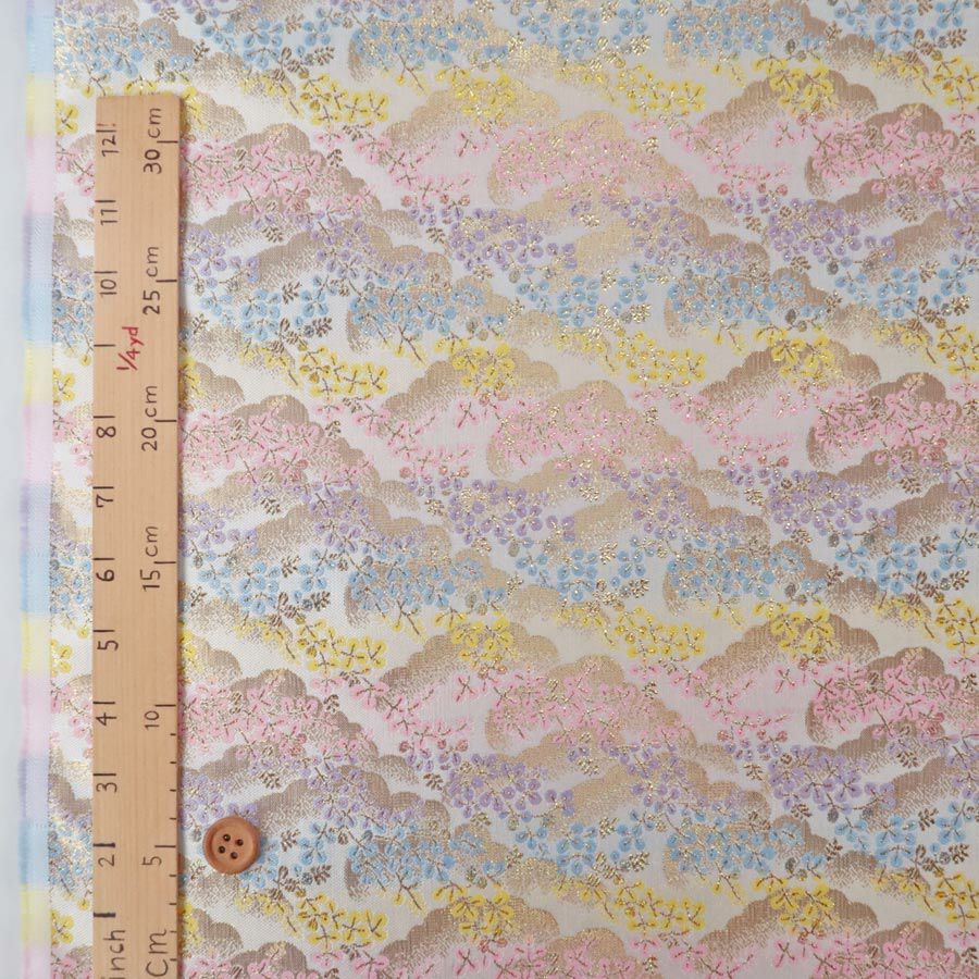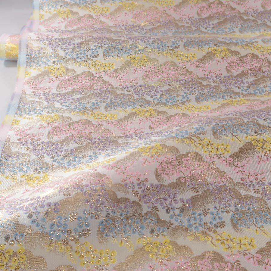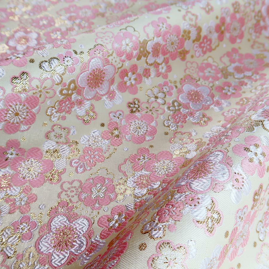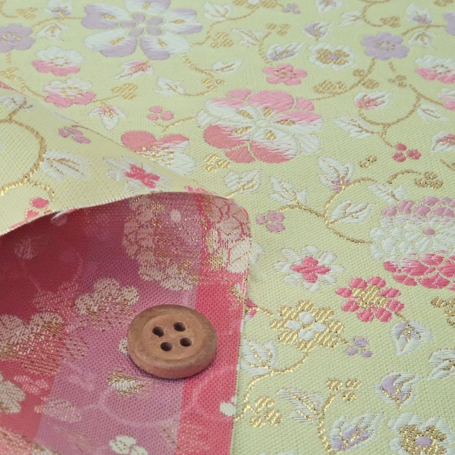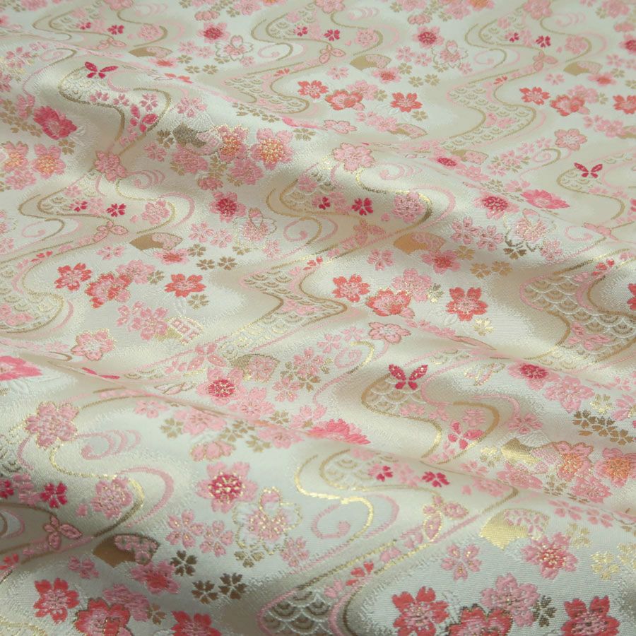 他の画像を見る かわいい色柄の西陣織きんらん 金襴生地(金らん) 流水に夜桜と蝶(アイボリー/ピンク) 10cm単位 切り売り 販売価格 ¥ 385 税込 在庫切れ 再入荷お知らせ お気に入りに登録する