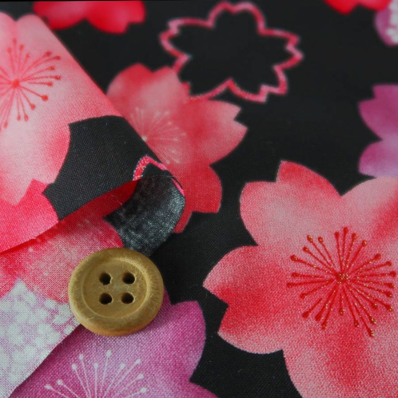 生地の上のボタンは直径約2cmです。生地のたて方向=写真のたてです。
