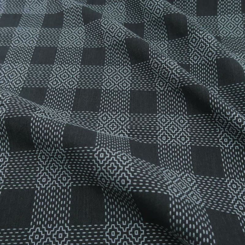 sakizomemomenシリーズ 在庫限り/ 先染木綿生地・北欧風ステッチ模様 (素色/紺) 10cm単位 切り売り