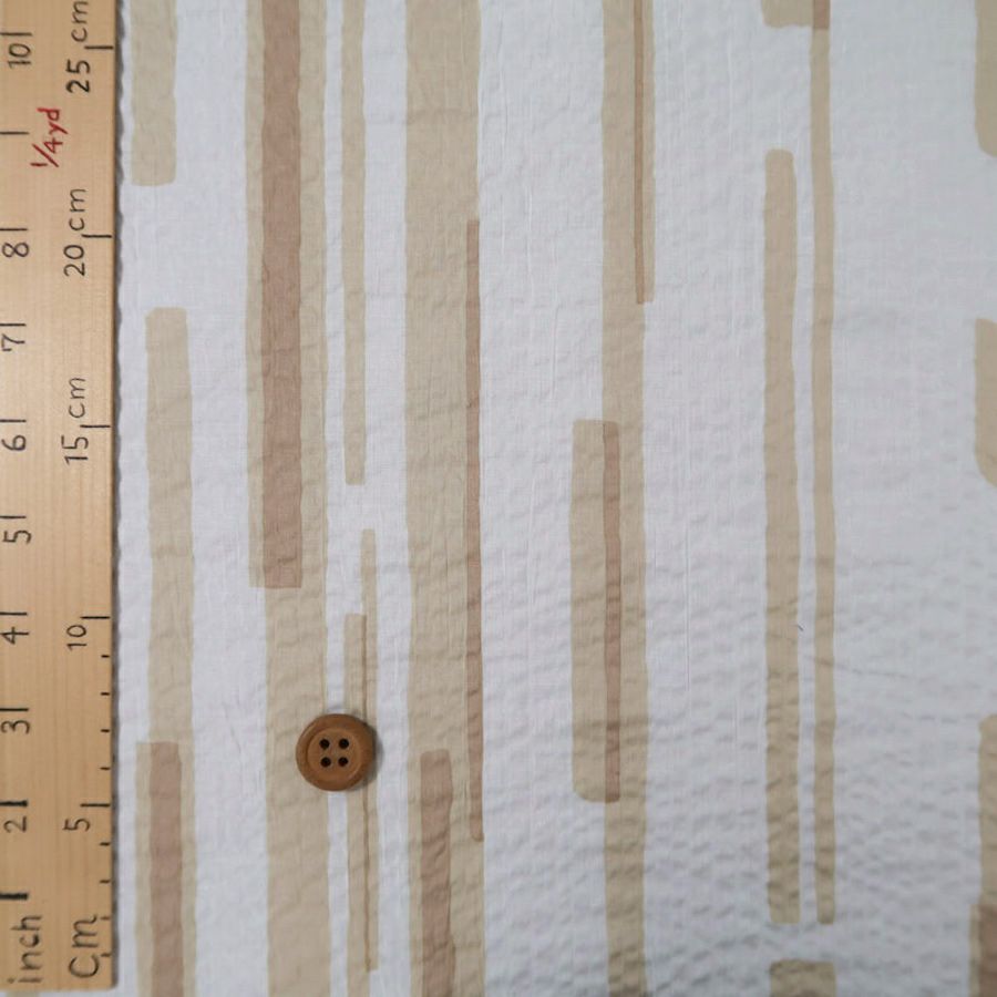 他の画像を見る ナチュラルな魅力のコットン生地 生産終了/在庫限り しじら織り生地・たて縞(アイボリーベージュ) 10cm単位 切り売り 定価 ¥ 151 のところ 販売価格 ¥ 145 税込 お気に入りに登録する
