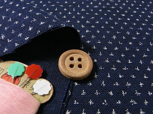 生地の上のボタンは直径約2cmです。生地のたて方向=写真のたてです。