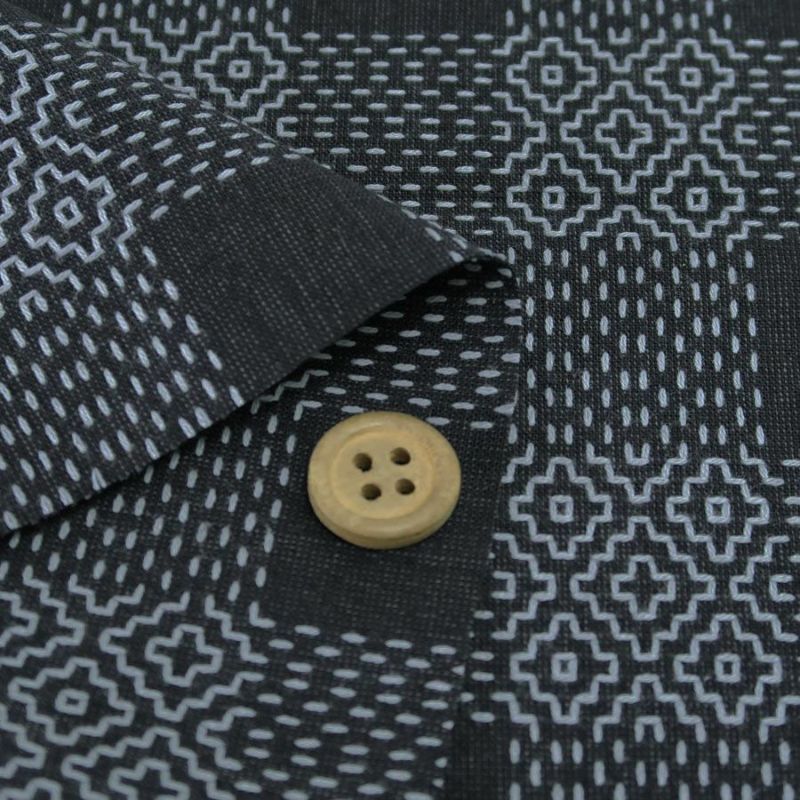 sakizomemomenシリーズ 在庫限り/ 先染木綿生地・北欧風ステッチ模様 (素色/紺) 10cm単位 切り売り