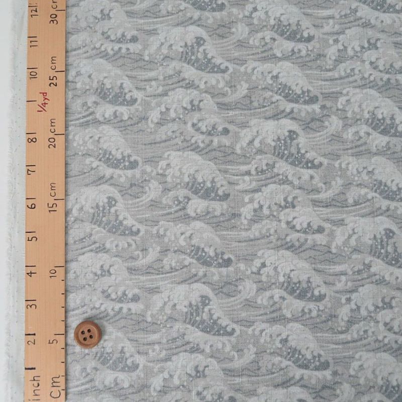 男性の甚平・シャツ・さむえに 和柄コットン生地 デニム風荒波文様(グレー) 10cm単位 切り売り
