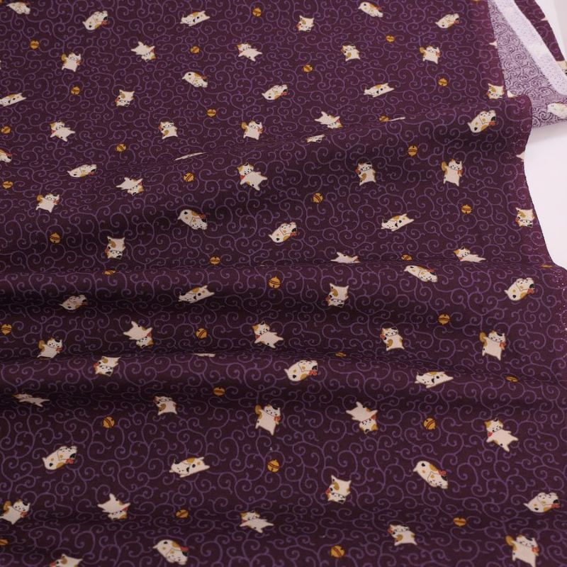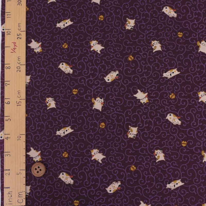 ねこ好きの方に☆和の猫柄24種! 手染め和風コットン生地・匠 ねこあそび(黒) 段単位 切り売り