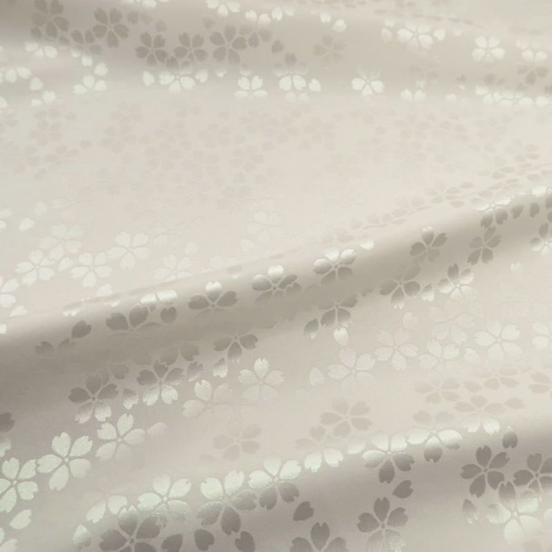 真っ白で美しい ポリエステル生地 W巾 サテンジャカード 桜模様(白) 10cm単位 切り売り