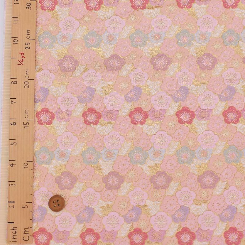 くすみ感のある可愛さがいい西陣おりもの 金襴生地(金らん) はなやぎ梅づくし(クリームベージュ) 10cm単位 切り売り
