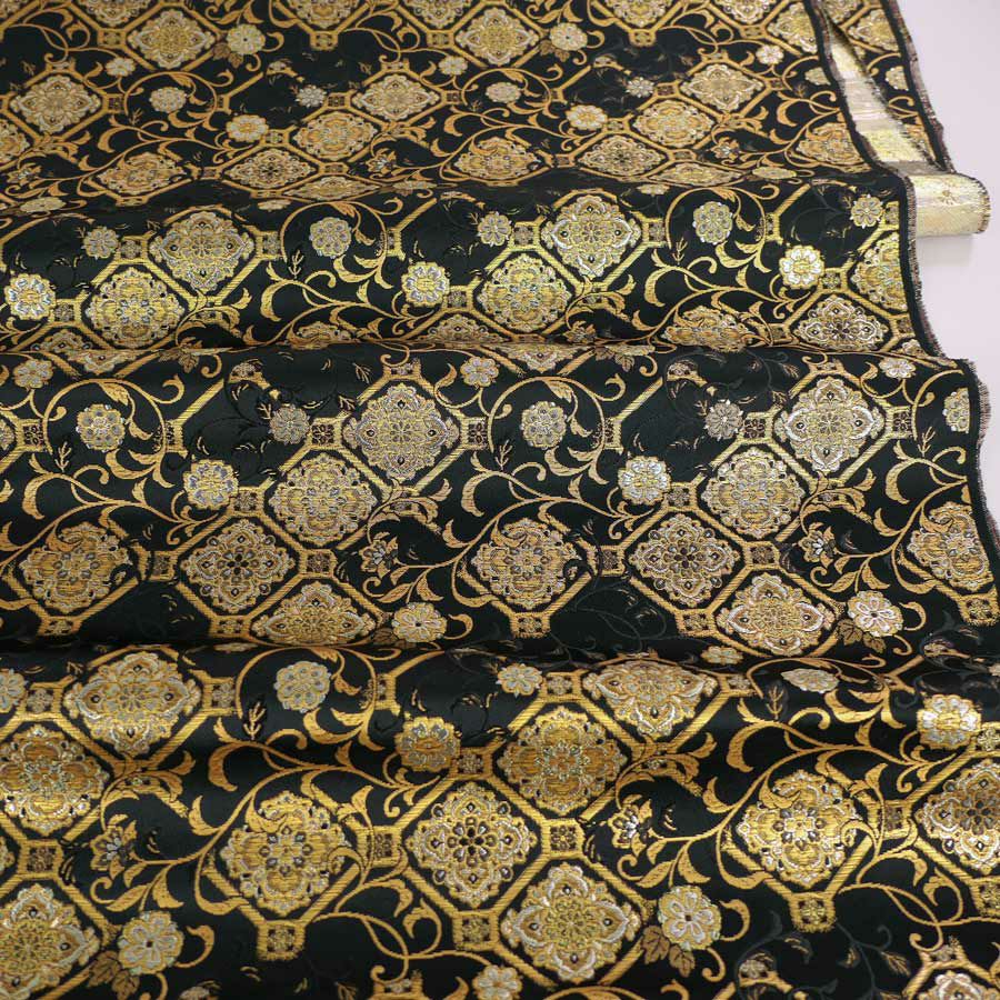 金襴生地(金らん) ゴシック調連続柄(黒/金) 10cm単位 切り売り