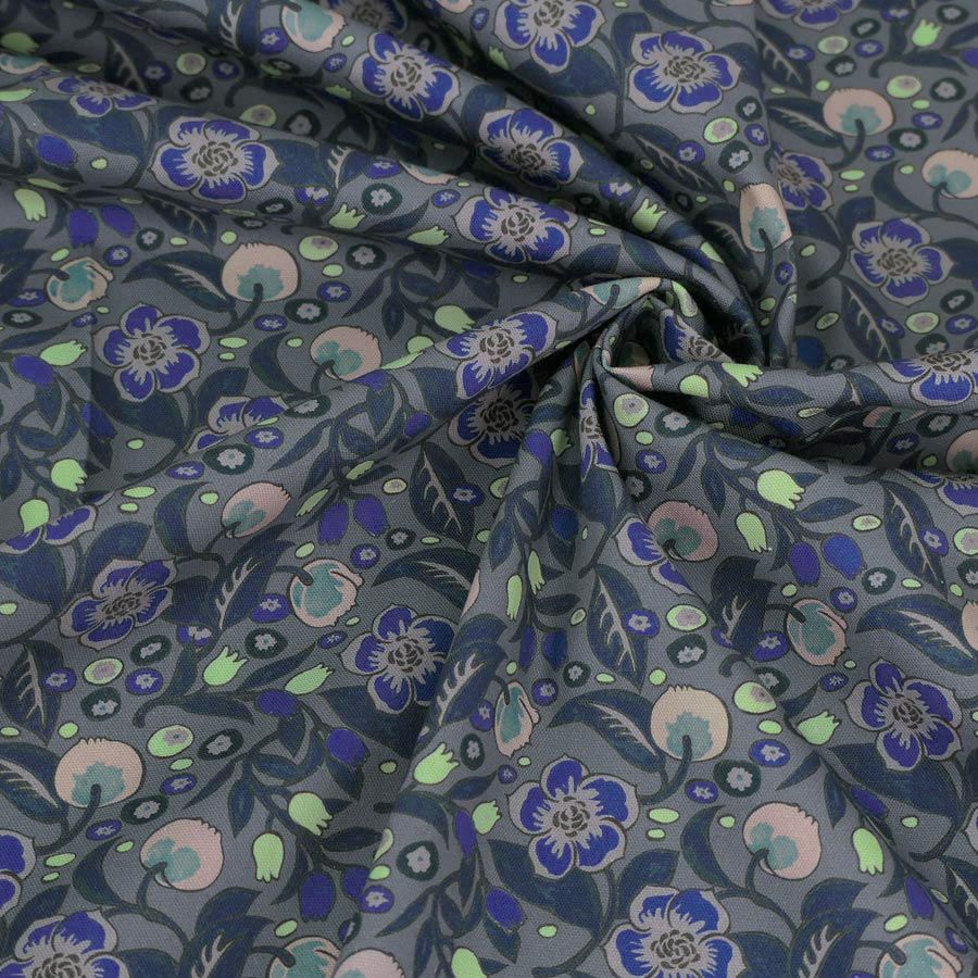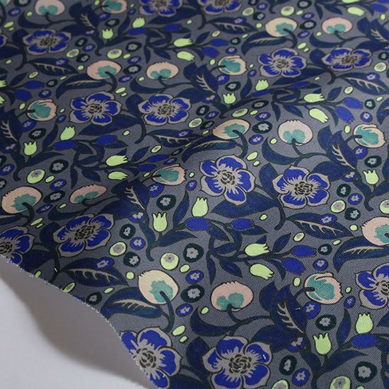 コットン生地 無国籍な花柄(青/グレー) 10cm単位 切り売り