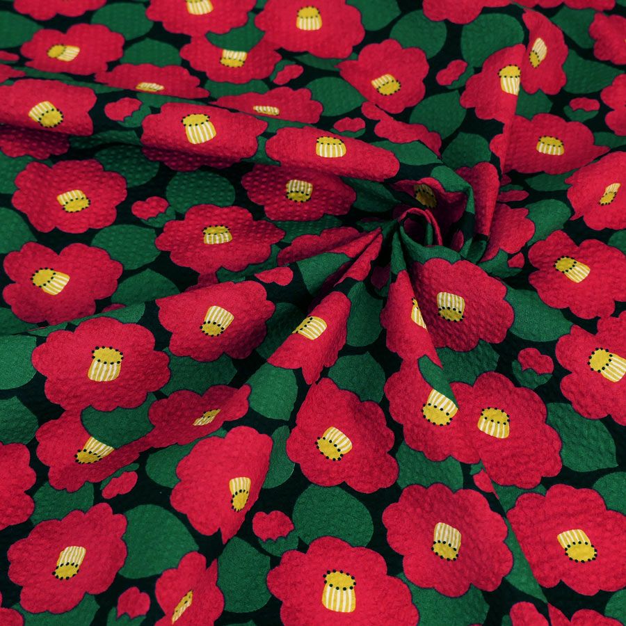 リップル生地 つばき(黒) 10cm単位 切り売り