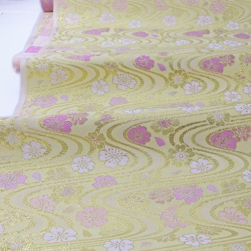 華やかな西陣織・衣装やバッグに 金襴生地(金らん)流水に雪輪とねじり花(アイボリー) 10cm単位 切り売り