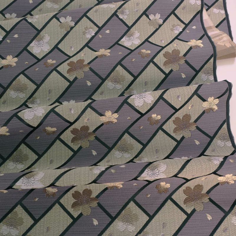 シックな色の西陣織物 金襴生地(金らん) 桧垣にのぞく桜(ねずみ色) 10cm単位 切り売り