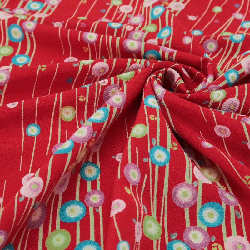 七五三の着物・半衿に可愛い洗えるちりめん 在庫限り/ ポリちりめん生地 小さな丸椿(濃紺) 10cm単位 切り売り