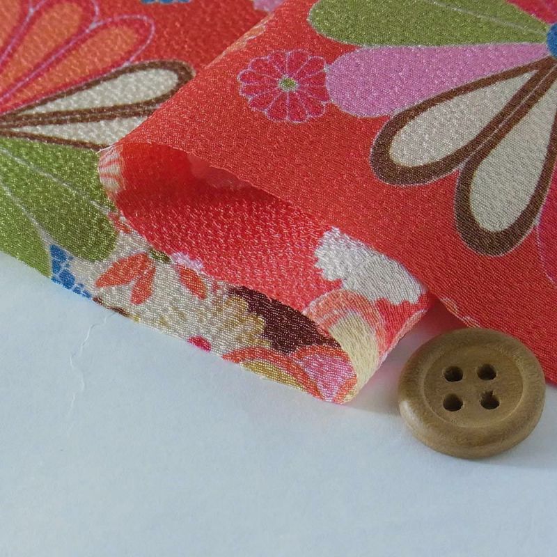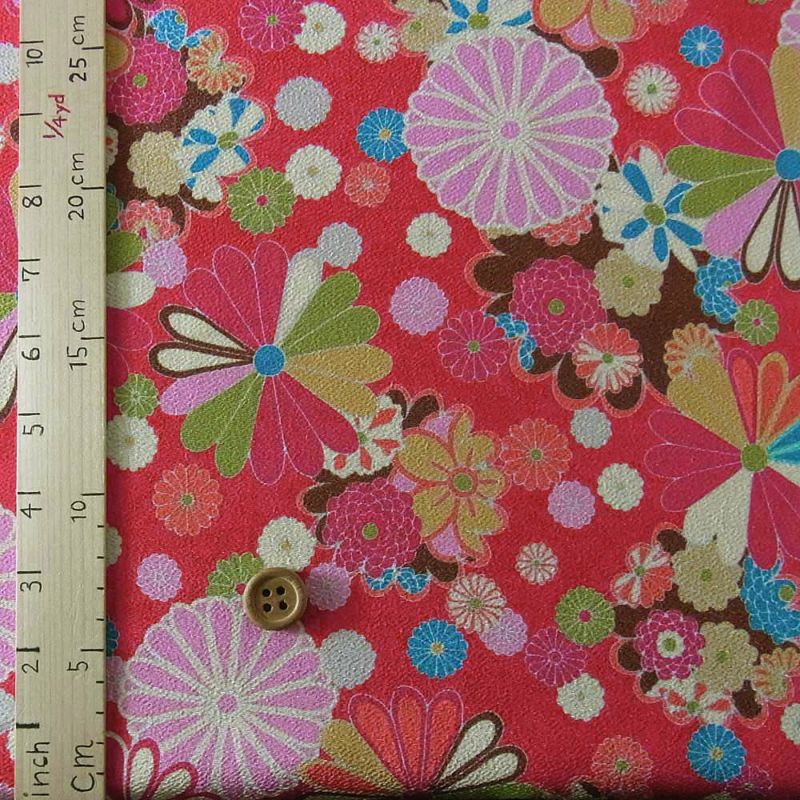 七五三の手作り着物にも! ポリちりめん生地・大菊小菊(赤) 10cm単位 切り売り