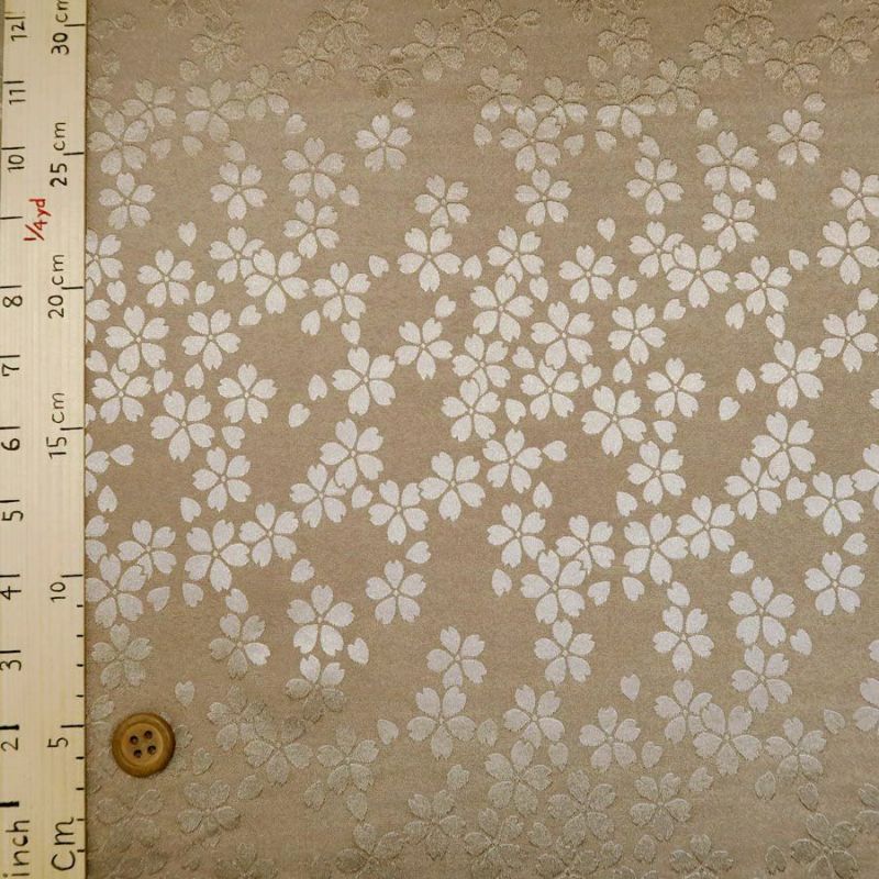 インテリアから衣装まで! ポリエステル生地 W巾 サテンジャカード 桜模様(アイボリー) 10cm単位 切り売り