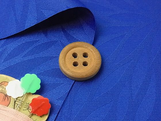 生地の上のボタンは直径約2cmです。生地のたて方向=写真のたてです。
