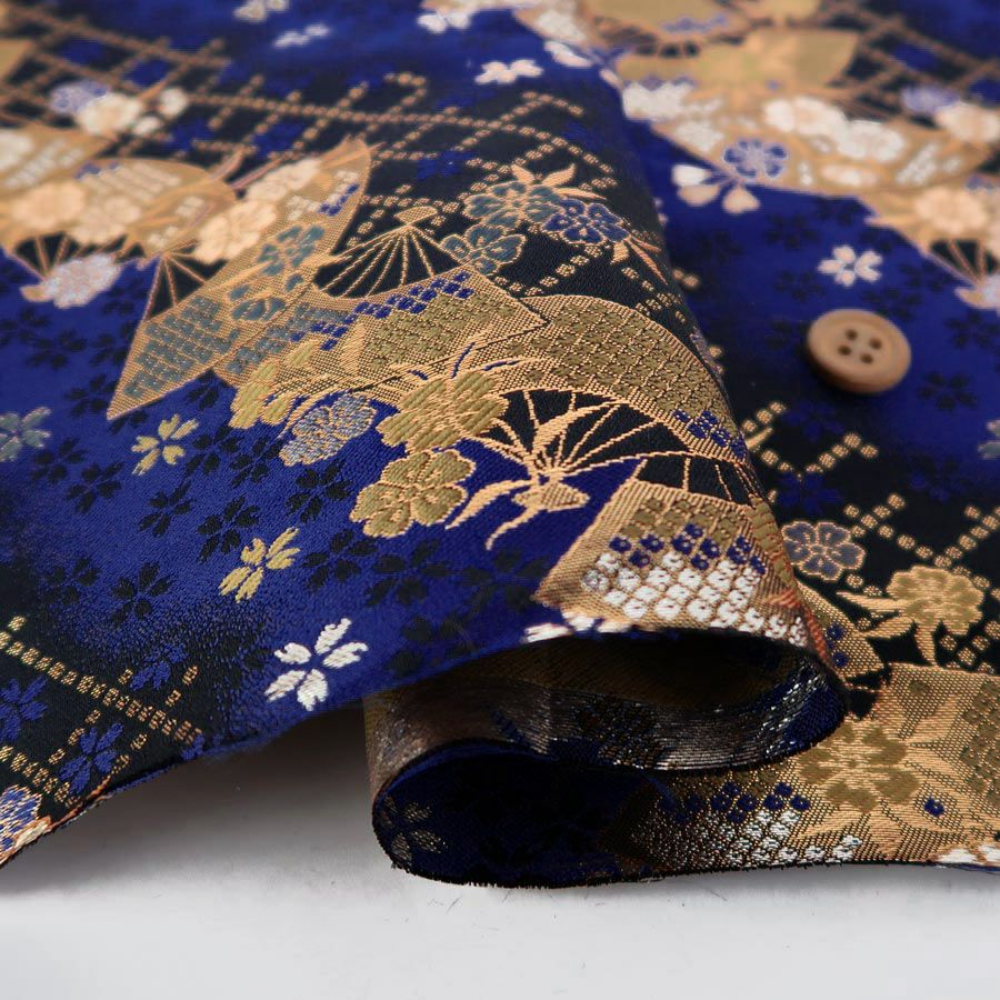ポリちりめん生地 桜紋ちらし(紺/ピンク) 10cm単位 切り売り