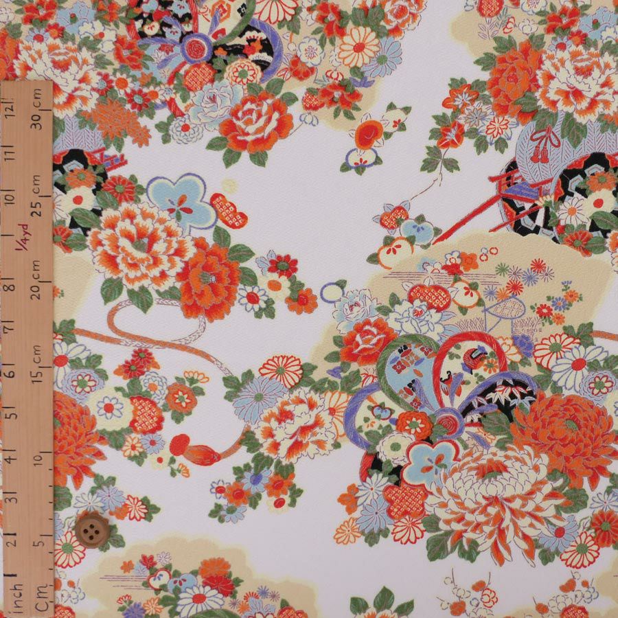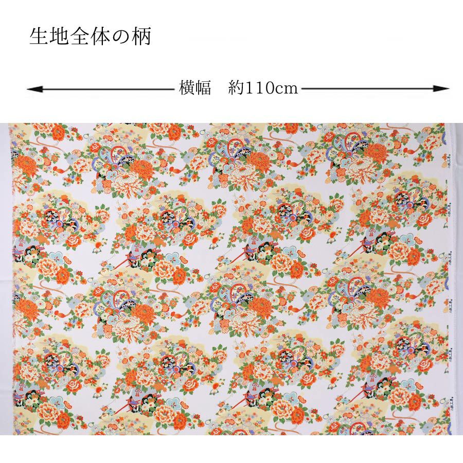 着物用洗える生地 彩り花結び(白地) 10cm単位 切り売り