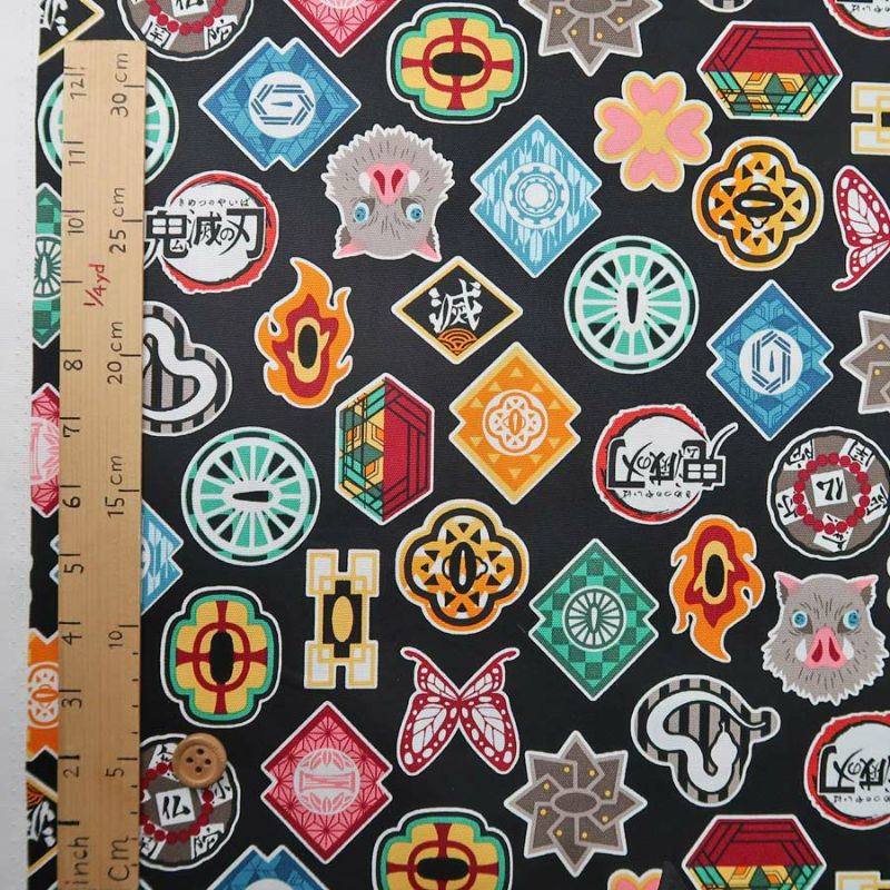 生地の上のボタンは直径約2cmです。生地のたて方向=写真のたてです。