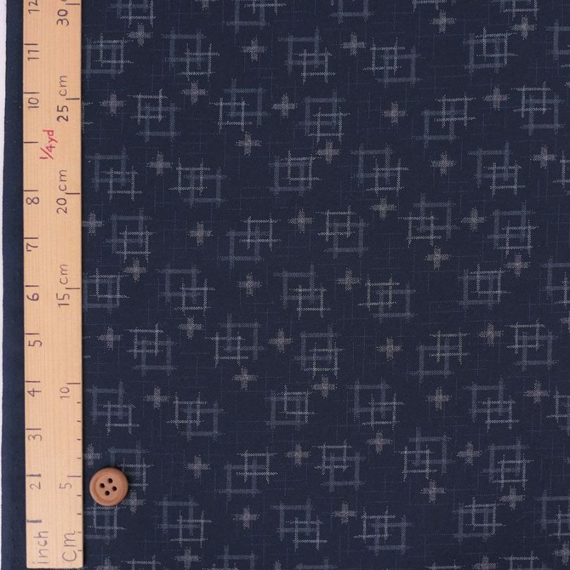 商品案内定番の使いやすい絣柄をプリントで表現した和調生地。無難な柄で、柄サイズも適度で使いやすいので、多用途にご活用ください。